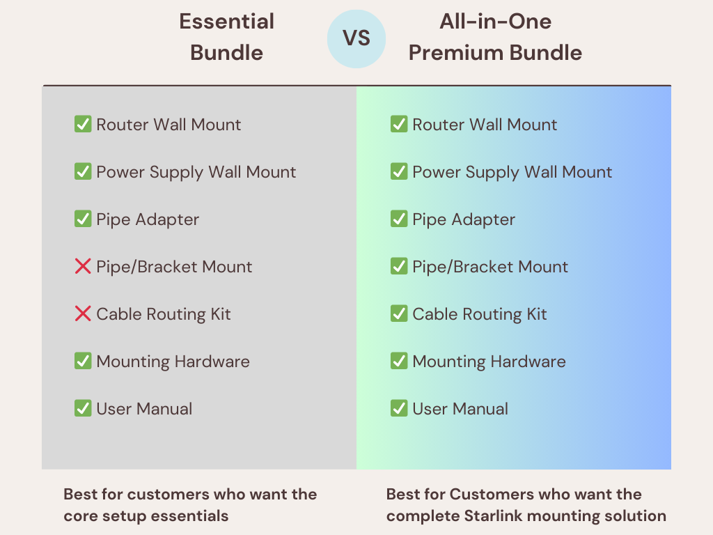 Upgrade to our All-in-One Premium Bundle — includes the Pipe/Bracket Mount + Cable Routing Kit for a fully professional Starlink installation.